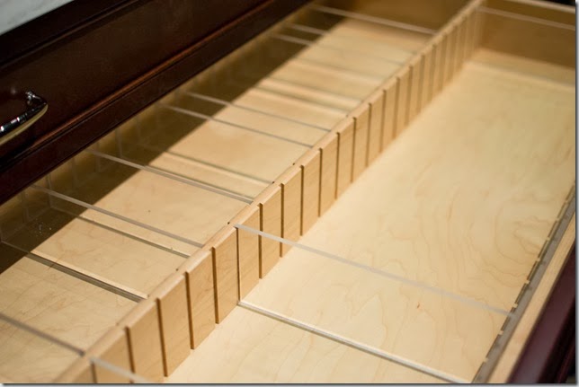 The drawers within a drawer allows you to have a wider overall drawer front. This deep drawer actually held 4 smaller drawers, two above two.